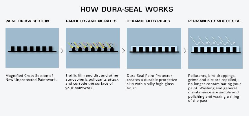 DURA-SEAL 陶瓷漆面保护 为您的新车提供了最新的漆面保护技术。您将永远不再需要给车辆上蜡!DURA-SEAL 陶瓷漆面保护 形成一个耐刮花的耐久表面,永久地与您车辆的表面涂层紧密结合(聚合)在一起。